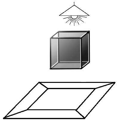 图1-4所示是正方体在地面上的投影情况。三维正方体有6个面、 8个顶点、 12条棱,它们在平面投影中也都能得到体现,只不过不够逼真,被挤压在同一个平面中了。