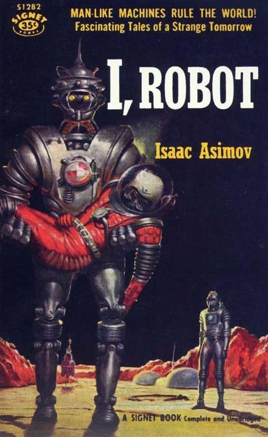 比《基地三部曲》影响更大的,可能是阿西莫夫提出的机器人三定律。在《我,机器人》这本小说中,阿西莫夫提出三大法则:第一,机器人不得伤害人类,或坐视人类受到伤害;第二,除非违背第一法则,机器人必须服从人类的命令;第三,在不违背第一及第二法则下,机器人必须保护自己。