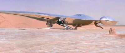 拉姆达级穿梭机泰得瑞姆号简捷轻便的帝国运输机,皇帝和黑武士的座驾。在起飞时三机翼对称打开,顶端一扇像鲨鱼鳍一样保证其飞行时的平衡性,下方两扇在降落时则会收拢在一起、为停机节省了不少空间。
