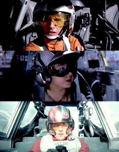 尽管乔治·卢卡斯和J·J·艾布拉姆斯都在各种访谈中再三强调,真正让《星球大战》成为影史上不可逾越的丰碑的原因并不是那些炫酷的飞船,但相信没有哪个星战迷们在看到《原力觉醒》中,钛战机标志性的呼啸声划破天际、千年隼跌跌撞撞拔地而起、X翼战机奋勇追缴帝国空军的镜头时,不会像瞬间回到六岁时一样兴奋得不能自已。和光剑、黑武士头盔、R2D2/ C3PO们一样,星战中那些飞船不仅早已成为了系列中最具象征性的标志之一,更是进化为了故事中一个不可或缺的角色。图为X翼战机