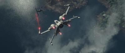 《星球大战7:原力觉醒》中出现的X翼战机与钛战机空战。
