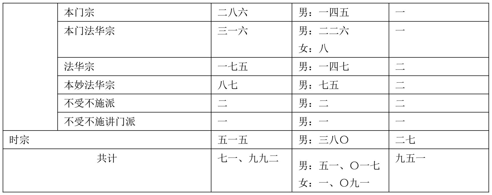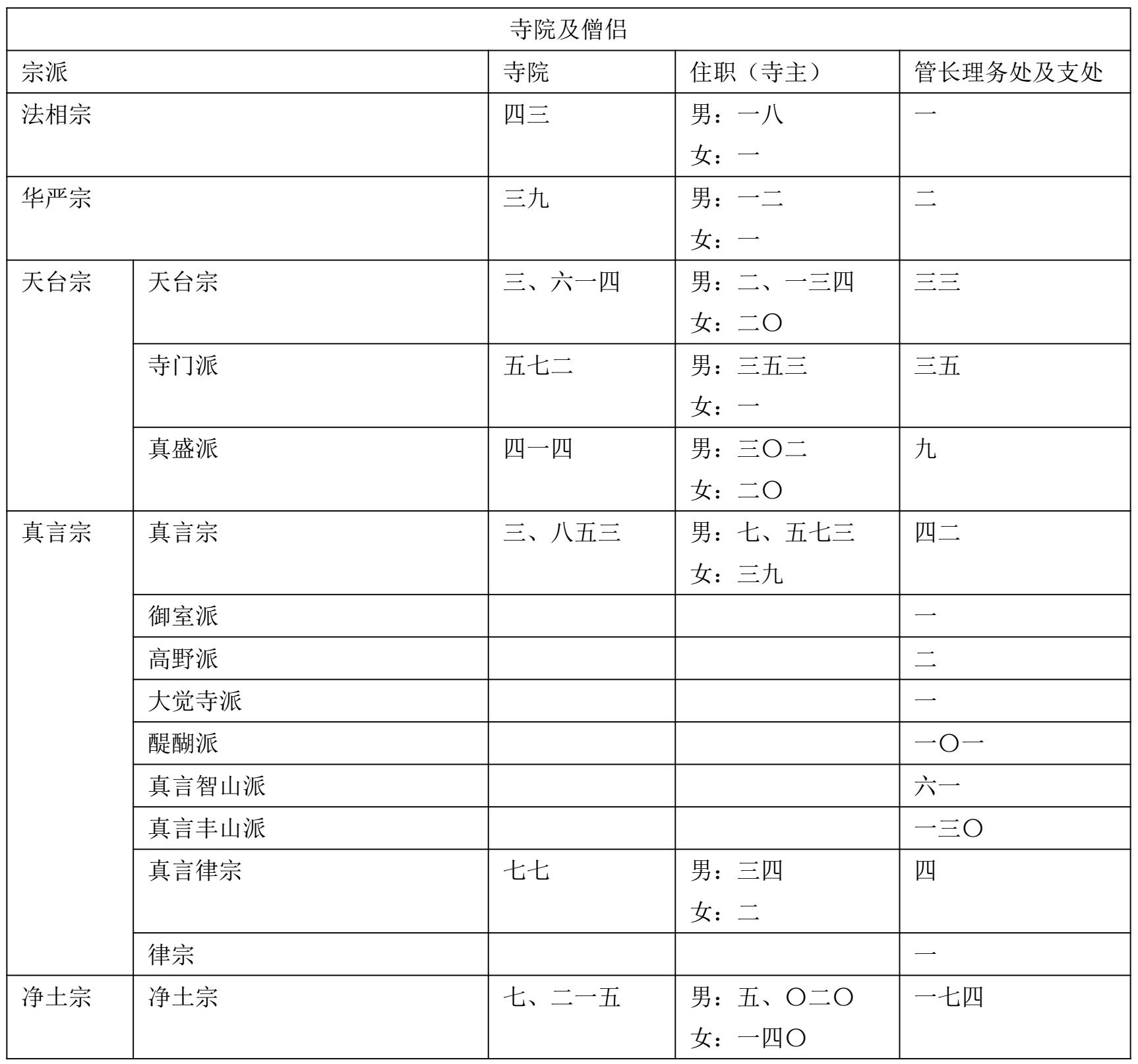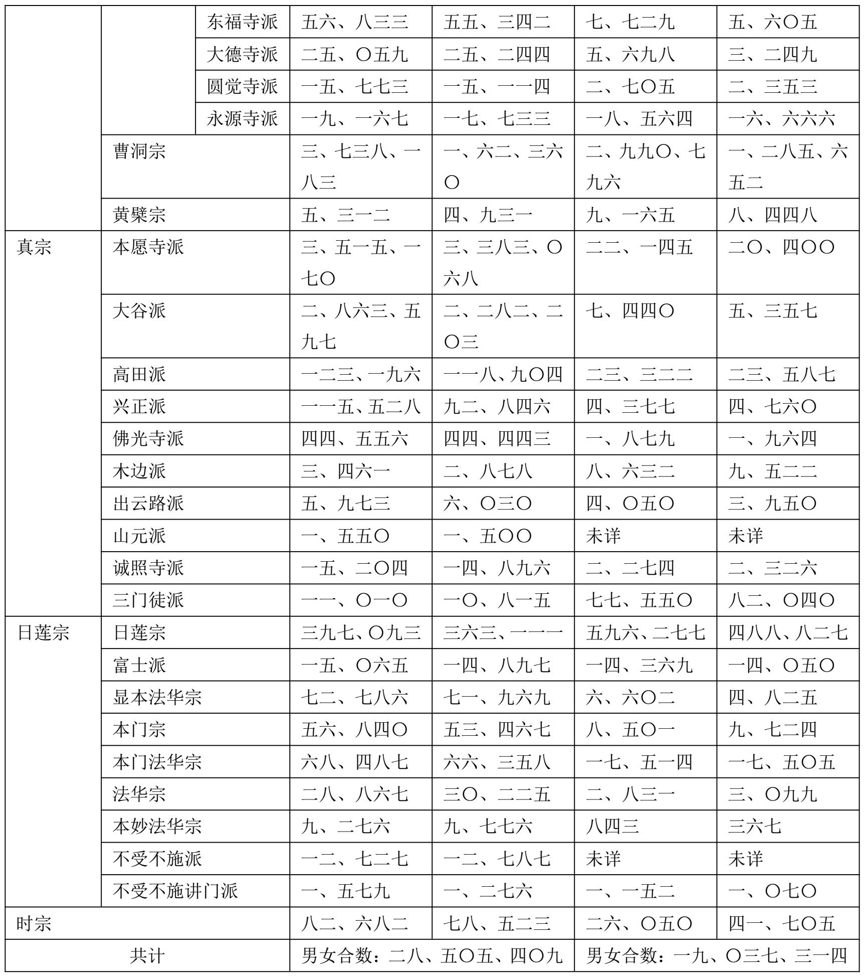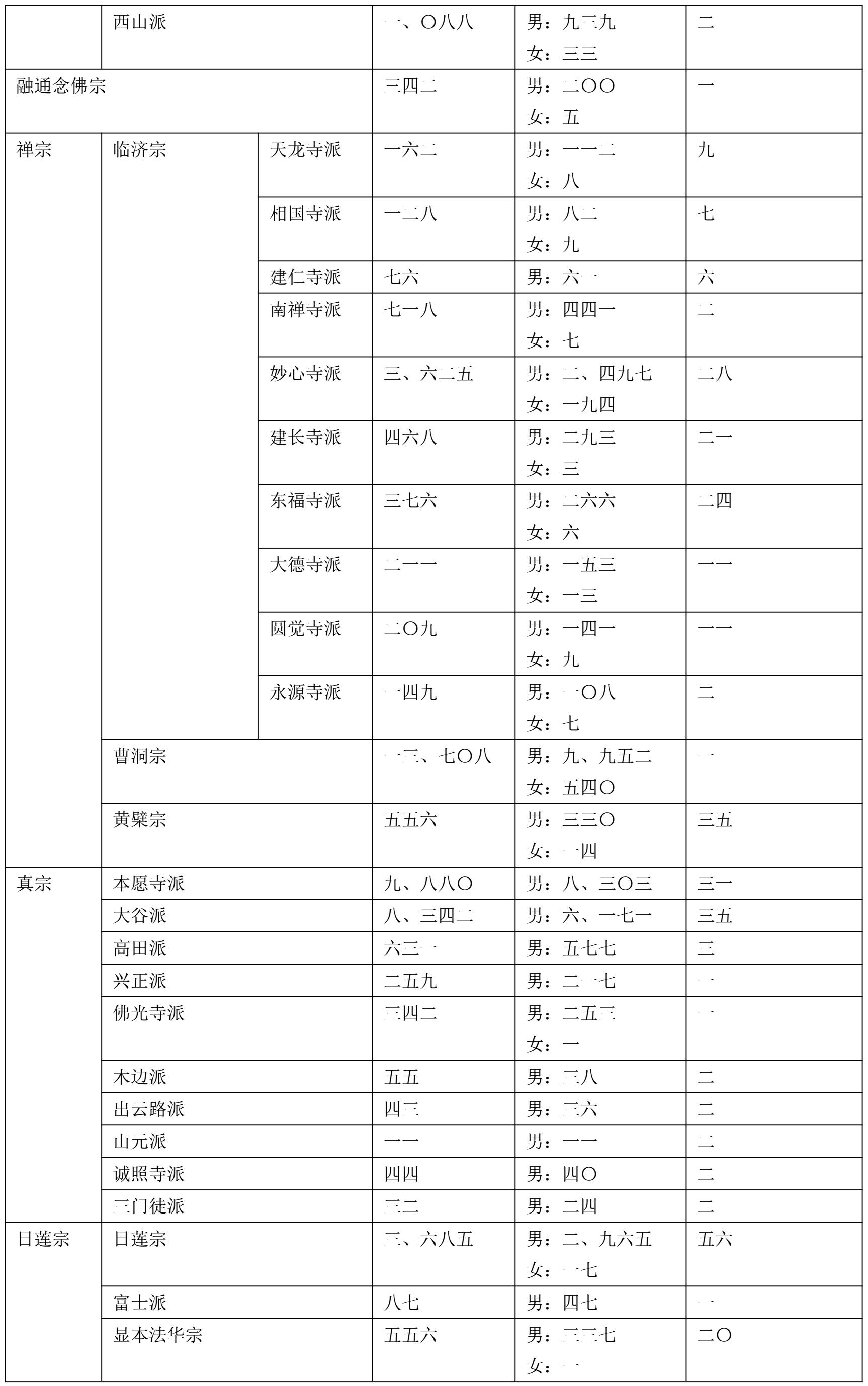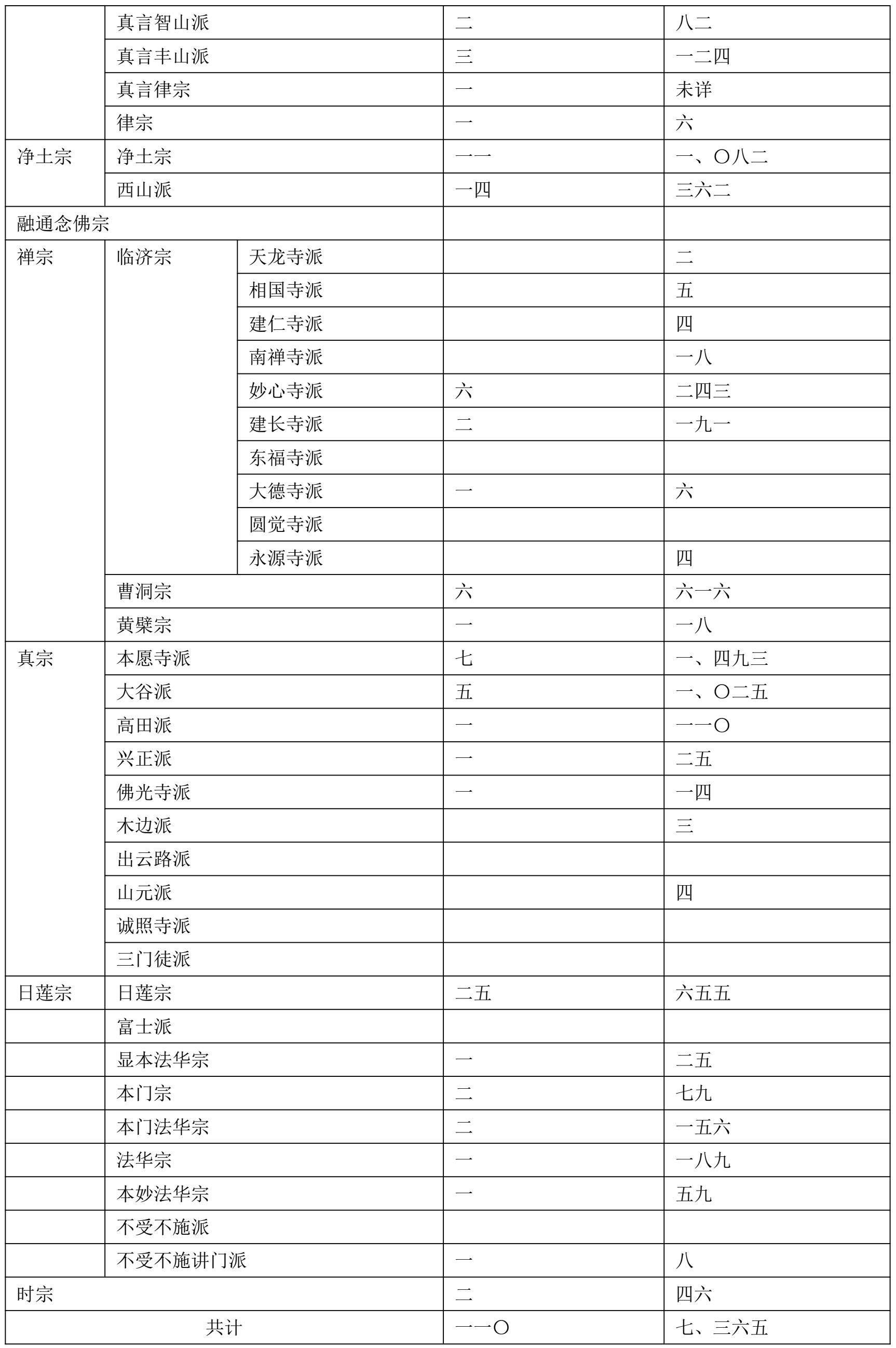 据内务省宗务局所核查最近之统计,各宗派之情势如下。