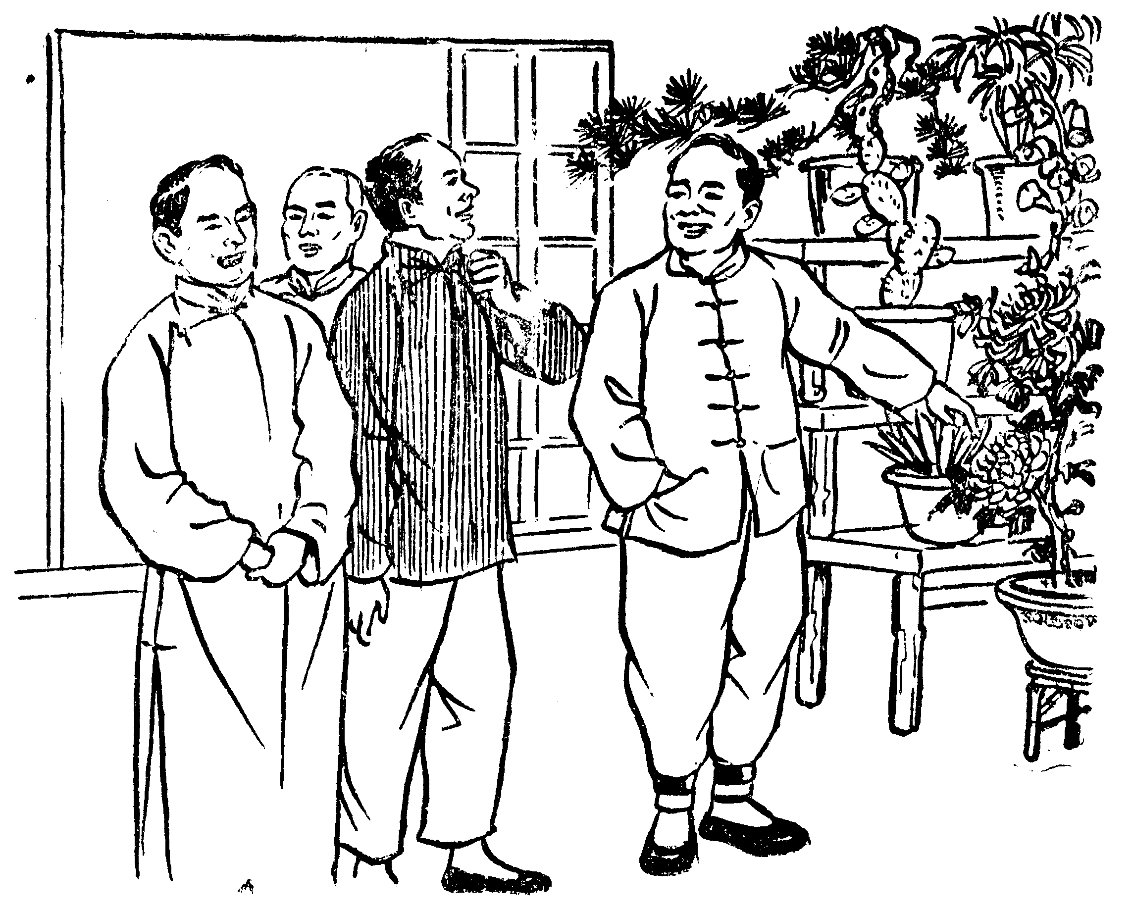 他醉眼朦胧的大着舌头对众人说:“呵,你们可不晓得我发财的缘故吧?你们以为我种了什么了不得的名贵的花吗?不是的。老实讲给你们听。我把两种不同的普通花卉的枝干接起来,就得种种不同的奇花了。”