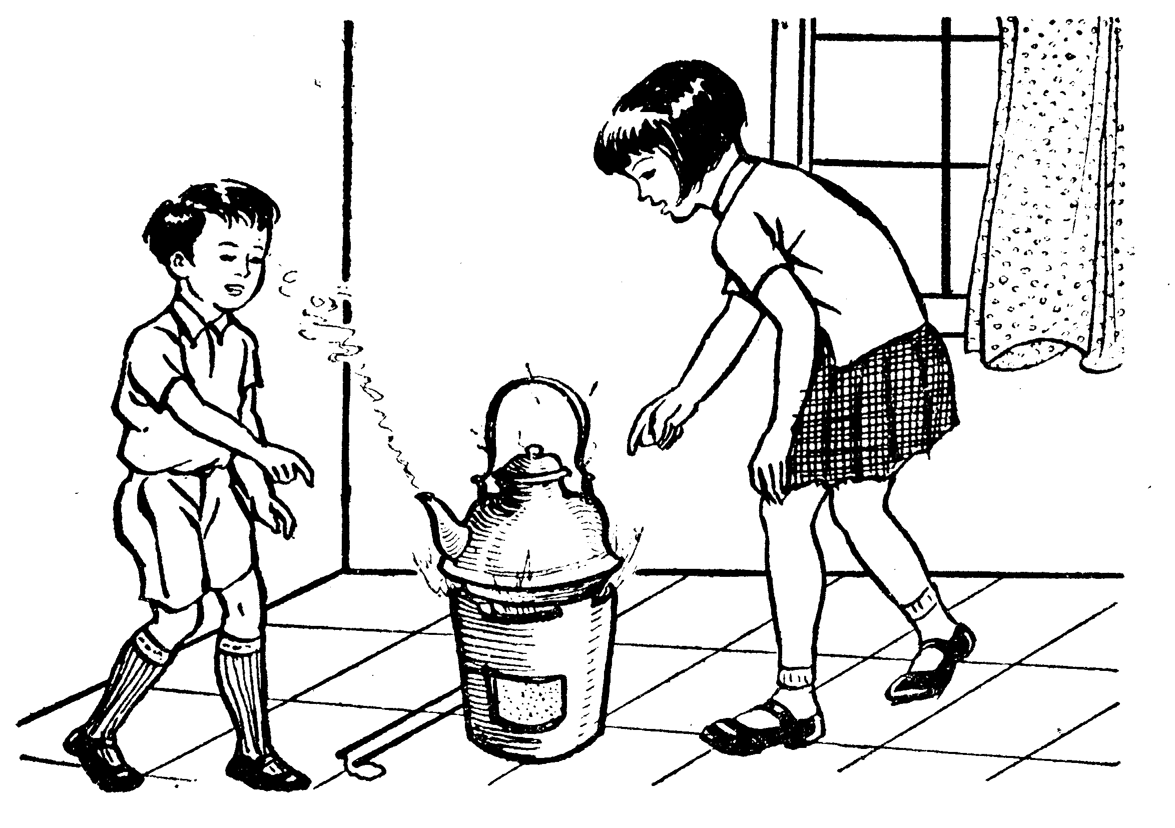 一个暑天的下午,小敏刚从户外走进屋子里来,满头大汗,气吁吁的拿起茶壶来倒开水喝。但是,壶中已滴水全无了。