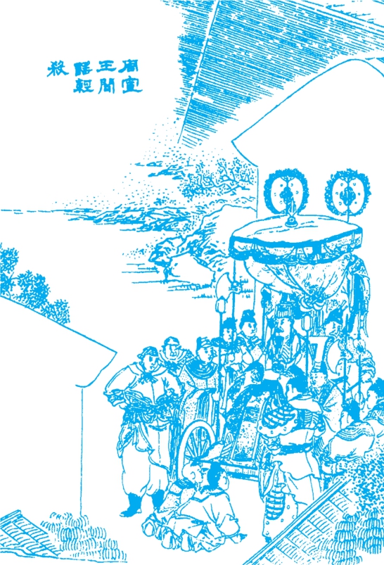 宣王甚恶其语,使御者传令,尽拘众小儿来问。群儿当时惊散,只拿得长幼二人,跪于辇下。宣王问曰:“此语何人所造?”幼儿战惧不言,那年长的答曰:“非出吾等所造。三日前,有红衣小儿到于市中,教吾等念此四句,不知何故,一时传遍,满京城小儿不约而同,不只一处为然也。”宣王问曰:“如今红衣小儿何在?”答曰:“自教歌之后,不知去向。”宣王嘿然良久,叱去两儿,即召司市官,吩咐传谕禁止:“若有小儿再歌此词者,连父兄同罪。”当夜回宫无话。