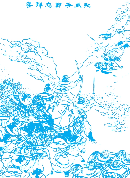 分拨已定,公孙戴仲开关搦战。戎帅小良持刀跃马,领着戎兵三千,出寨迎敌。两下交锋,约二十合,戴仲气力不加,回车便走,却不进北关,绕城向东路而去。小良不舍,尽力来追。大良见戎兵得胜,尽起大军随后。将近东门,忽然炮声大震,金鼓喧天,茨苇中都是伏兵,如蜂攒蝇集。小良急叫:“中计!”拨回马头便走,反将大良后队冲动,立脚不牢,一齐都奔。公孙戴仲与公子元合兵追赶。大良吩咐小良上前开路,自己断后,且战且走。落后者俱被齐兵擒斩。戎兵行至鹊山,回顾追军渐远,喘息方定。正欲埋锅造饭,山坳里喊声大举,一支军马冲出,口称:“郑国上将高渠弥在此!”大良、小良慌忙上马,无心恋战,夺路奔逃,高渠弥随后掩杀。约行数里之程,前面喊声又起,却是世子忽引兵杀到,后面公子元率领齐兵亦至,杀得戎兵七零八落,四散逃命。小良被祝聃一箭,正中脑袋,坠马而死。大良匹马溃围而出,正遇着世子忽戎车,措手不及,亦被世子忽斩之。生擒甲首三百,死者无算。世子忽将大良、小良首级并甲首,都解到齐侯军前献功。