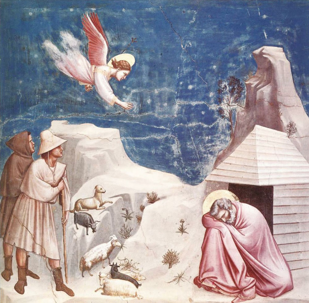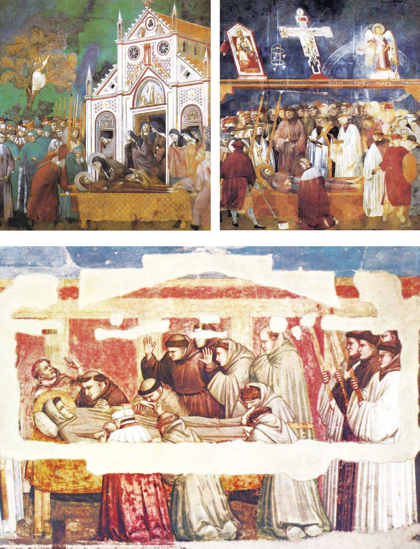 乔托(Ambrogio ou Angiolotto di Bondone Giotto,1266—1336,乔多)可说是基督教圣者阿西西的方济各(Saint Fran?ois d?Assise,1182—1226,法朗梭阿大西士)的历史画家。他一生重要的壁画分布在三所教堂中,其中二所都是方济各(法朗梭阿)派的寺院。在阿西西(阿西士)教堂中,就有乔托描绘圣方济各的行述的壁画二十八幅。佛罗伦萨(翡冷翠)圣十字教堂(圣太克洛斯大寺)的内部装饰,大半是乔托以圣方济各为题材的作品。帕多瓦(巴图)城阿雷那(阿莱那)教堂中,乔托描绘圣母与耶稣的传略的三十八幅壁画,也还是充满了方济各教派的精神。