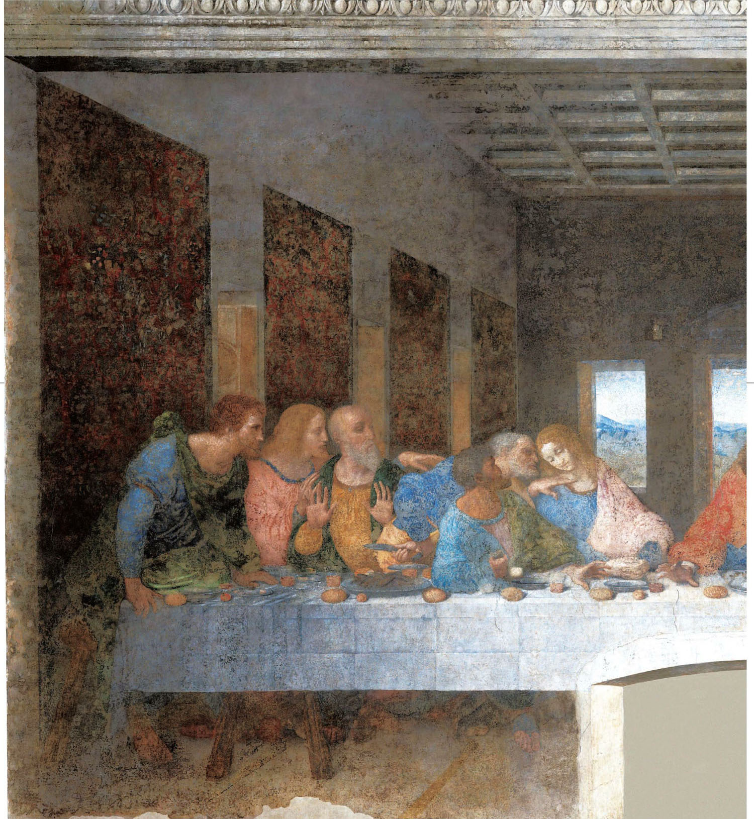 在这幕简短的悲剧中,有两个激动的时间:第一是耶稣说“你们中间有人会卖我!”这句话的时间,众徒又是悲哀又是愤怒,都争问着:“是我么?”——第二是耶稣说“这是我的肉体”“这是我的血”几句话的时间。前后几句话即是“最后之晚餐”的整个意义。在故事的连续上,后一个时间比较重要得多;但第一个时间更富于人间性的热情及骚动。莱奥纳多所选择的即是这前一个时间。