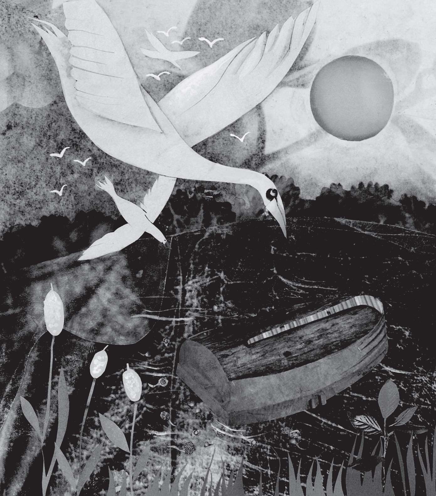 日落时分,一只天鹅飞来,落在一个漂亮的湖泊上面,湖面上有大群的鸭子和其他水鸟,还有划着船的渔夫。天鹅拍打翅膀的声音很响,在水面上溅起了很大的浪花,惊飞所有的水鸟,所有的船只都翻沉了,所以渔夫只好游回岸上。天鹅消失在水下便再也没有出现。一段时间的担心挂念之后,天鹅还是没有出现。斯图尔特开始思考,如果天鹅的翅膀被水湿透了,她——他将天鹅想成一只雌天鹅——不能飞了,他该怎么做呢?他坐在一艘倾覆了的船上,面前摆放着电脑。他上网搜索了关键词“天鹅之歌”,但是光线越来越暗,他看不见电脑上写着什么。他向水中看去,发现水上有很多的鼠标,拖着长长的尾巴,就像鳝鱼和蝌蚪一样,在水面下愤怒地游来游去。