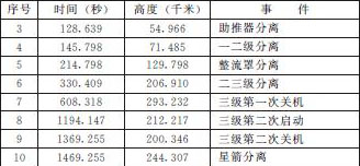 现以中国“长征3号乙”运载火箭将菲律宾马部海卫星送入预定轨道的全部控制过程为例,说明火箭入轨的各个阶段的工作情况和各级箭、星分离的时间。各个控制的控制程序列于表1和表2中。表1为发射准备程序,表2为飞行程序。
