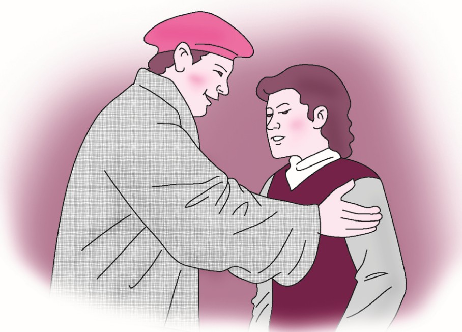 詹姆斯的话音刚落,那个人“咯咯”笑了起来。原来正是富兰克林,他第一次看见哥哥对自己这么恭敬,却忍不住笑出了声。