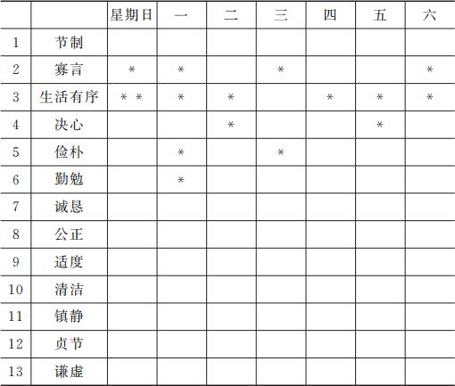 富兰克林作的每日自我检查表如下(带*的表示犯有过失)